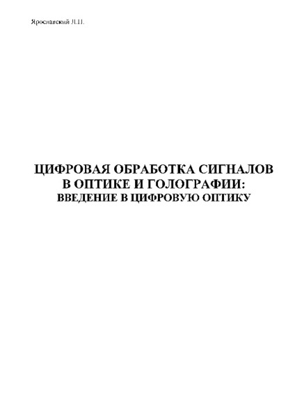 Цифровая обработка сигналов в оптике и голографии: введение в цифровую оптику
