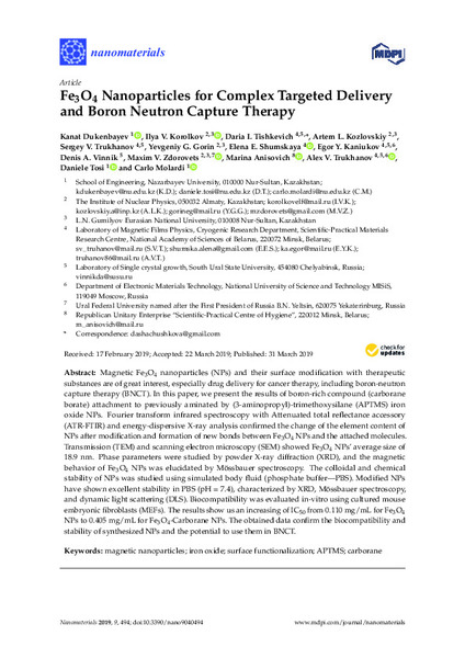 Fe3O4 Nanoparticles for Complex Targeted Delivery and Boron Neutron Capture Therapy