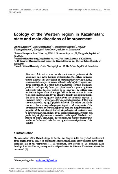 Western region in the Republic of Kazakhstan. The authors emphasize
