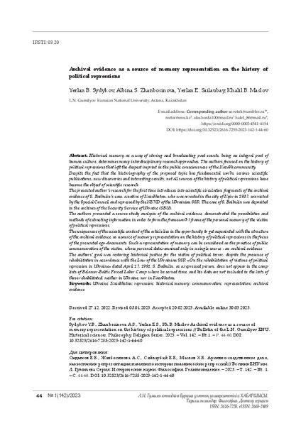 of the archival evidence, as a source of memory representation on the history of political repressions in the focus