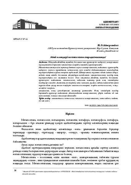 тұлға ретіндегі даралығы метапоэтика парадигмасында қарастырылады.