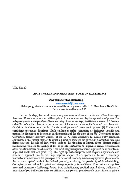 ANTI-CORRUPTION MEASURES: FOREIGN EXPERIENCE