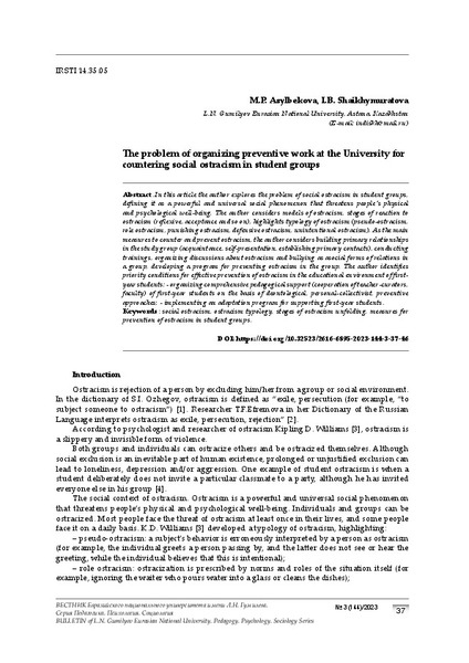 priority conditions for effective prevention of ostracism in the educational environment of firstyear students: - organizing comprehensive pedagogical support (cooperation of teacher-curators,